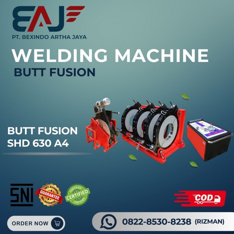 Merupakan Mesin yang digunakan untuk menyambung Pipa dan fitting yang terbuat dari bahan HDPE, PE, PP, PPR dan PVDF. Cara penyambungannya dilakukan dengan butt fusion Hydraulic, 4 clamp DN. 450 - 630 mm. Keunggulan Mesin ini mudah digunakan, lebih cepat, ringan dan kuat. Cocok digunakan pada lokasi lapangan maupun didalam bangunan.